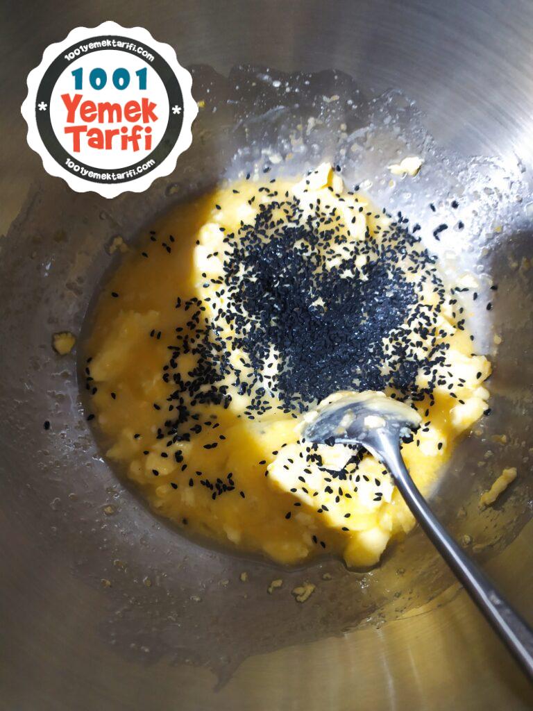 • Üzerine çörekotu eklenir tekrar karıştırılır.