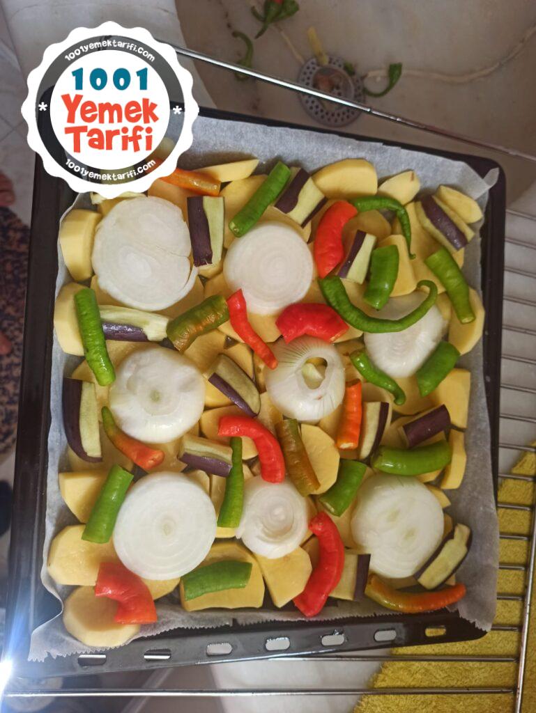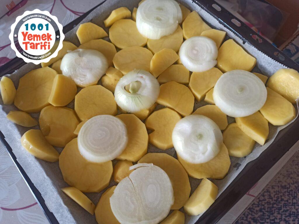 - Soğanlarıda üzerlerine yerleştirip hafif tuzluyoruz patateslerle birlikte.