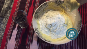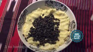 - Hazırlanan hamura damla çikolatayı hamura eşit dağılacak şekilde yoğurun.