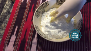 - Kabartma tozu şekerli vanilini ekleyin. Unu kontrollü ekleyerek yoğurun.