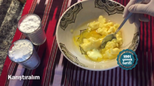 - Kabartma tozu şekerli vanilini ekleyin. Unu kontrollü ekleyerek yoğurun.