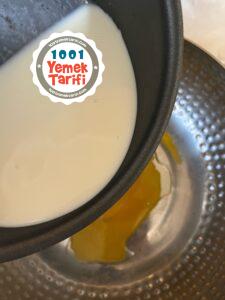 - Süt ve yumurtanın üzerine toz şekeri ilave edelim.
