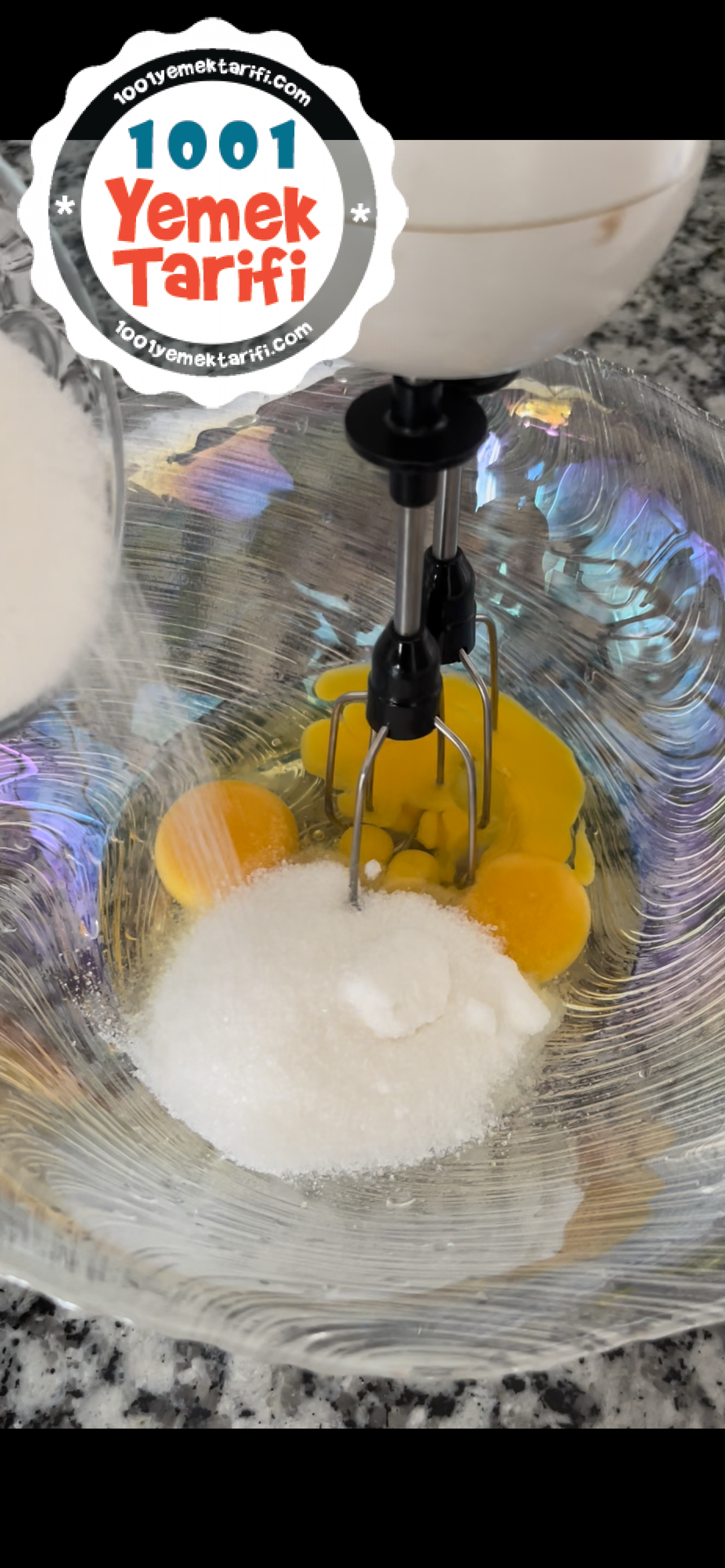 - Yumurta ile şekeri beyazlayana kadar çırpın.