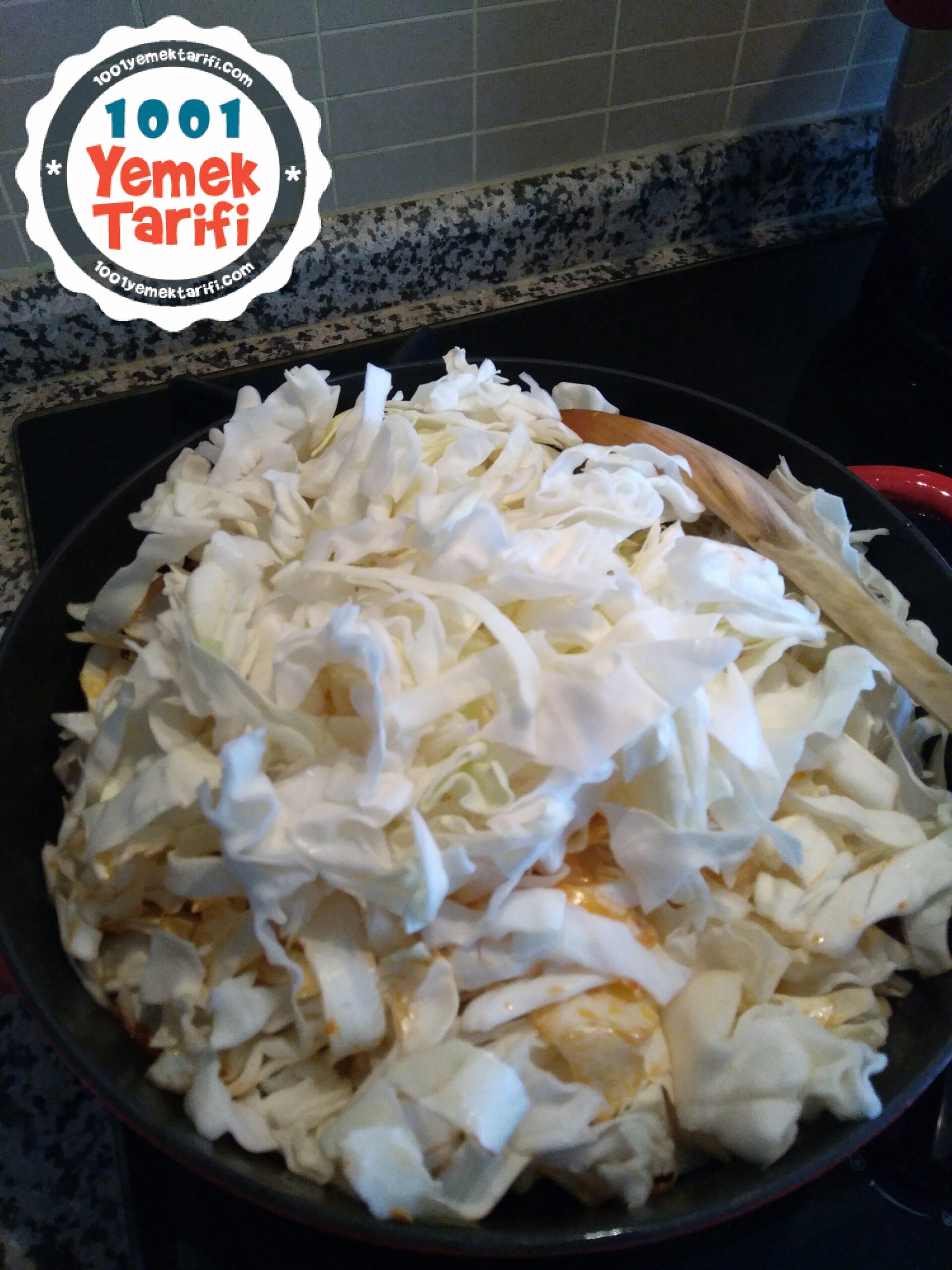 - Doğranmış lahanayı ekleyip lahanalar pişene kadar kavurmaya devam ettim.