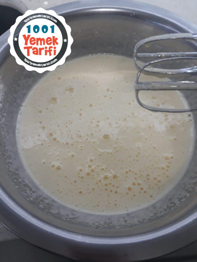 • Sonrasında 1/2 su bardağı sıvı yağ, 1 su bardağı sütü ekleyip hafifçe karıştıralım ki köpüğümüz sönmesin.