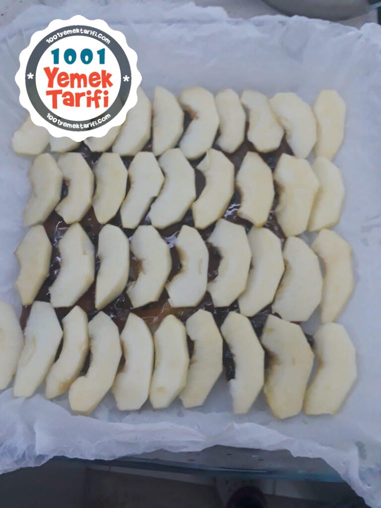 • Yarım ay şeklinde ve yarım santim kalınlığında dilimlediğimiz elmaları karamelim üzerine dizelim.