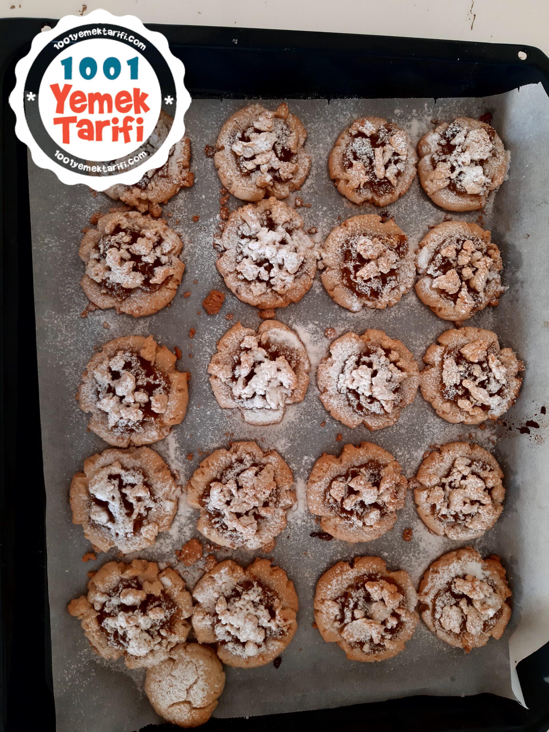 - Hamurumuzu ceviz büyüklüğünde yuvarlayalım tepsiye koyalım ve çay bardağını una batırıp hamurumuzun üstüne bastıralım. Ben 20 adet yaptım kalan hamura biraz un ilave ettim ve üstlerine döktüm