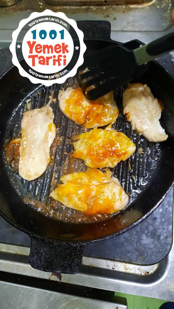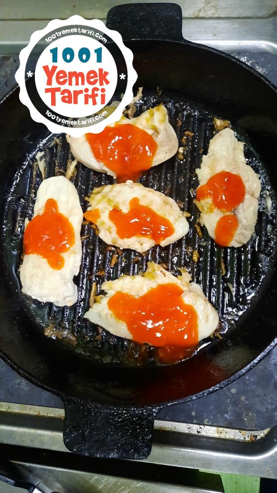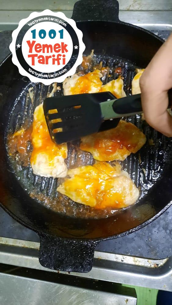 - Fileto bisdigine emin oldukdan sonra usdune sweet chilli sous ekliyoruz ve tavuklari tabamiza aliyoruz . Afiyet olsun