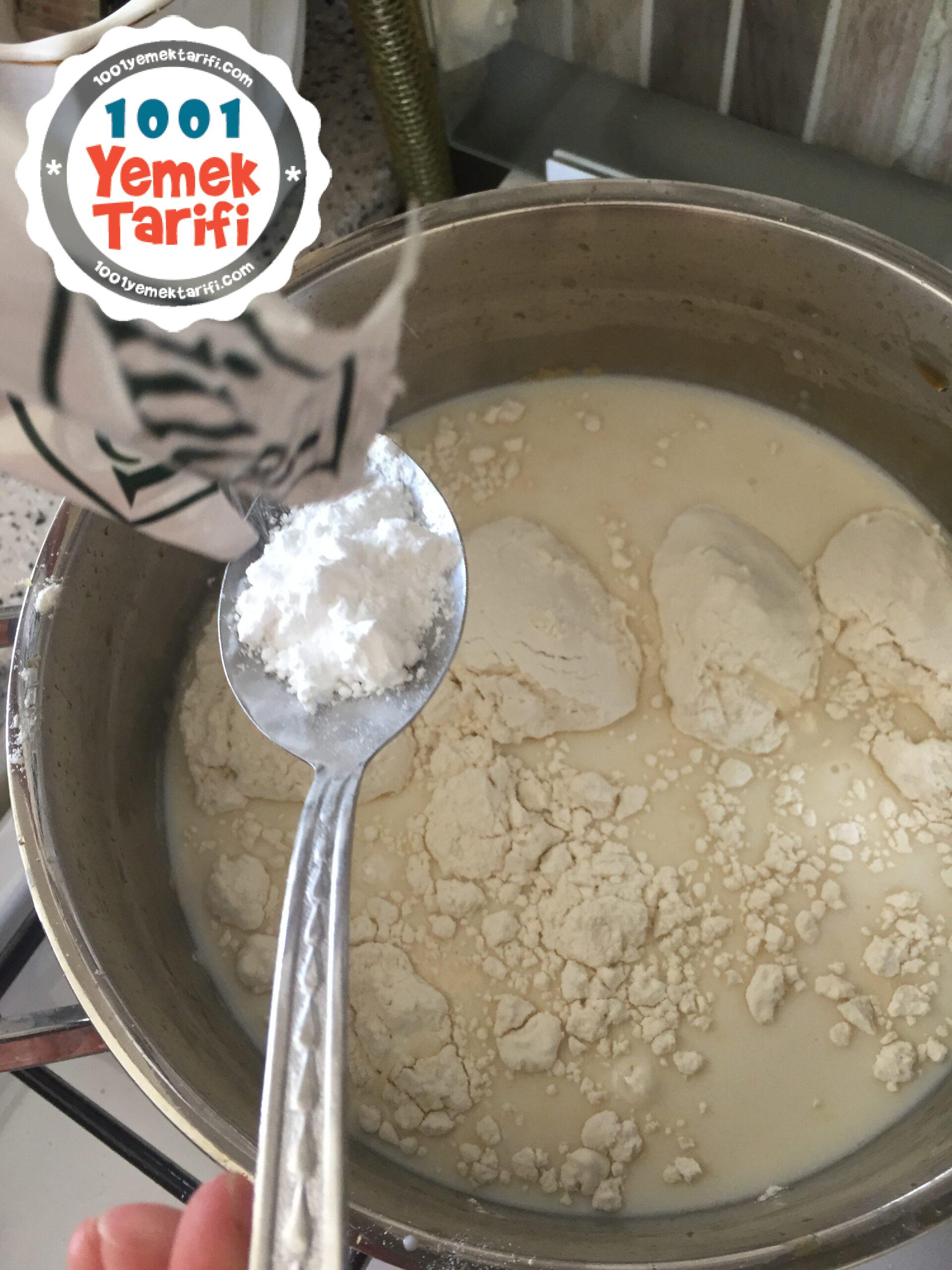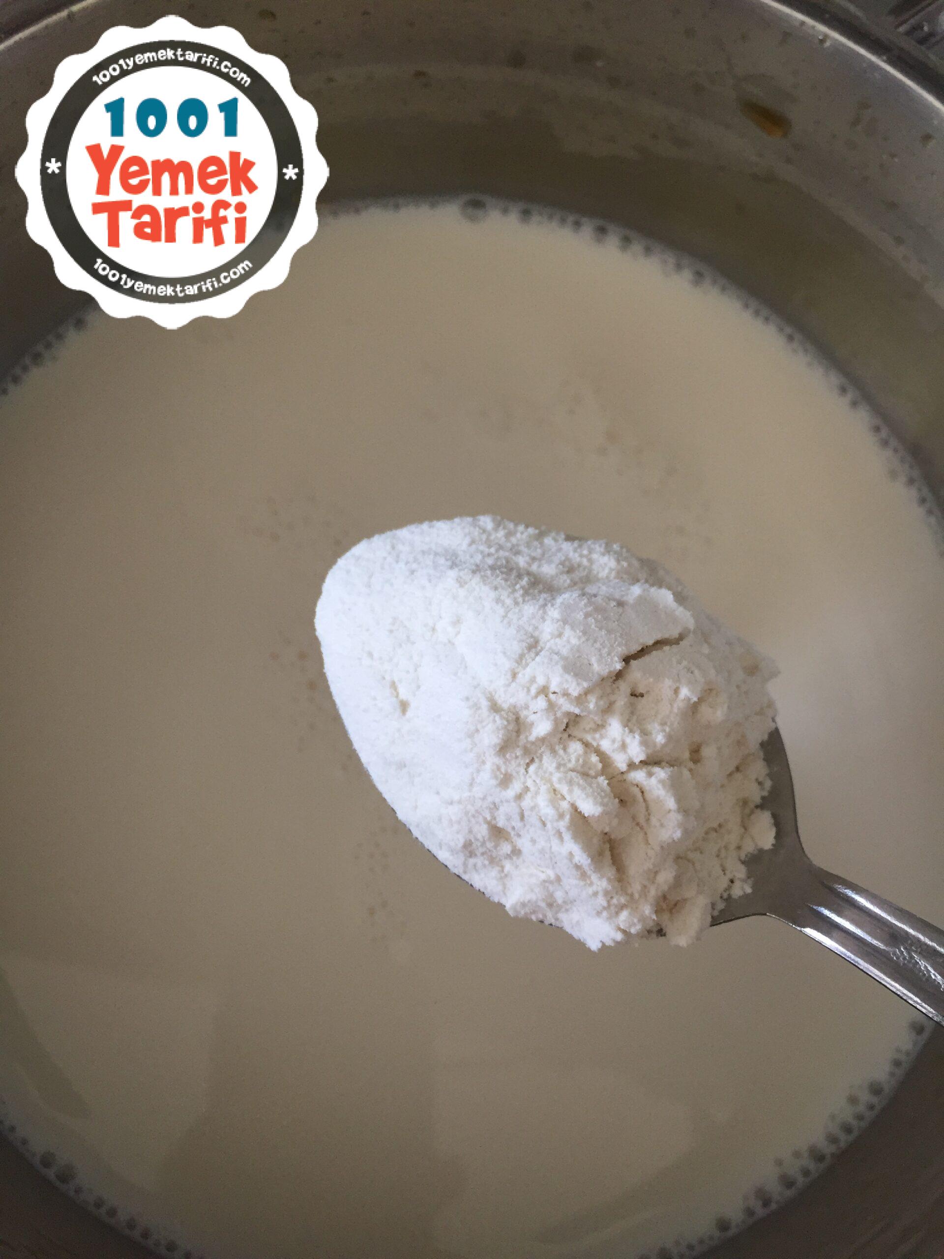 - Sütün üstüne unu, nişastayı, şekeri de koyup altını açalım.