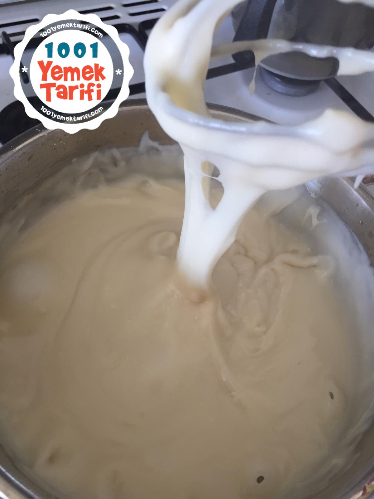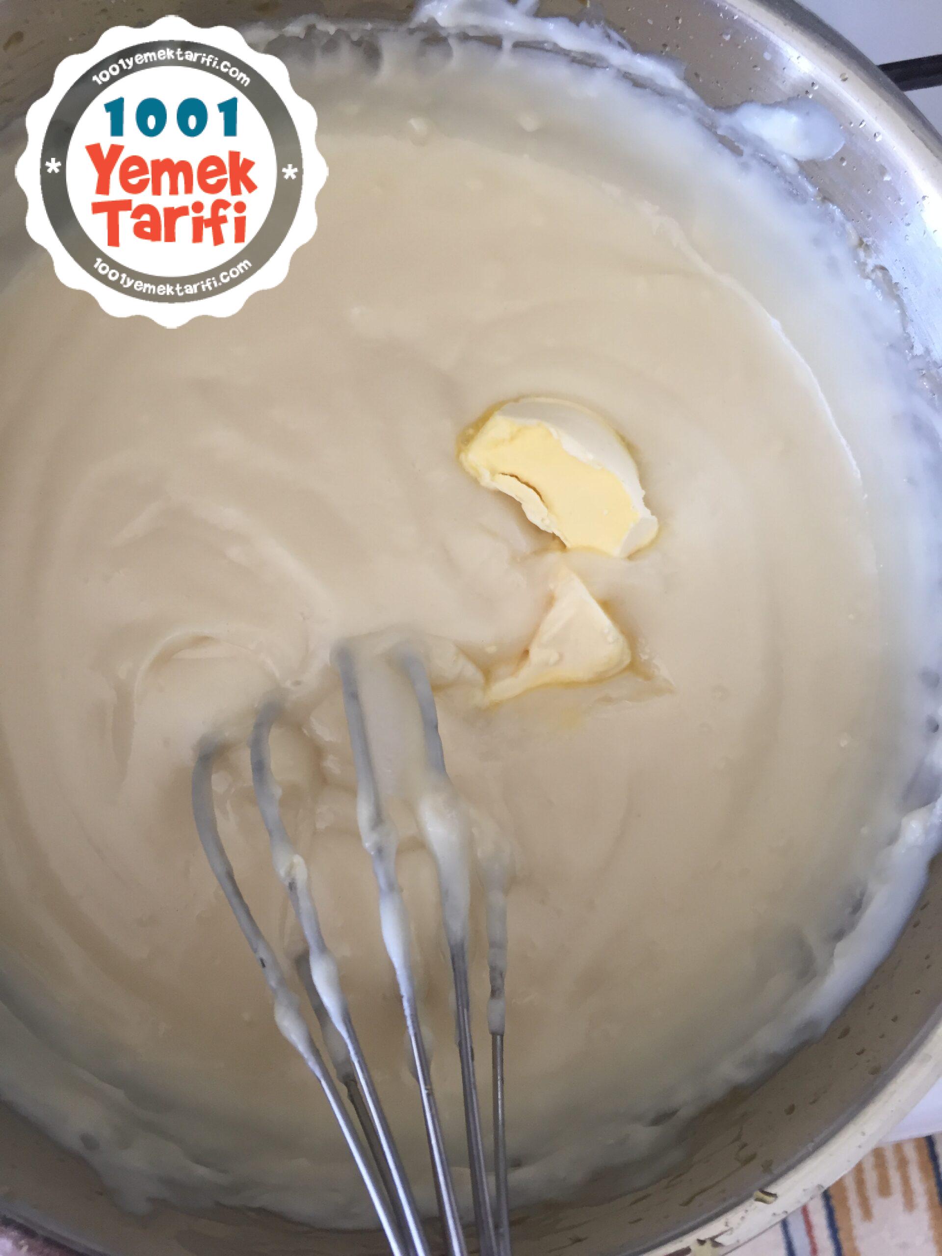 - Ilıdıktan sonra krem şantiyi ekleyip karıştıralım. Muhallebimiz hazır.
