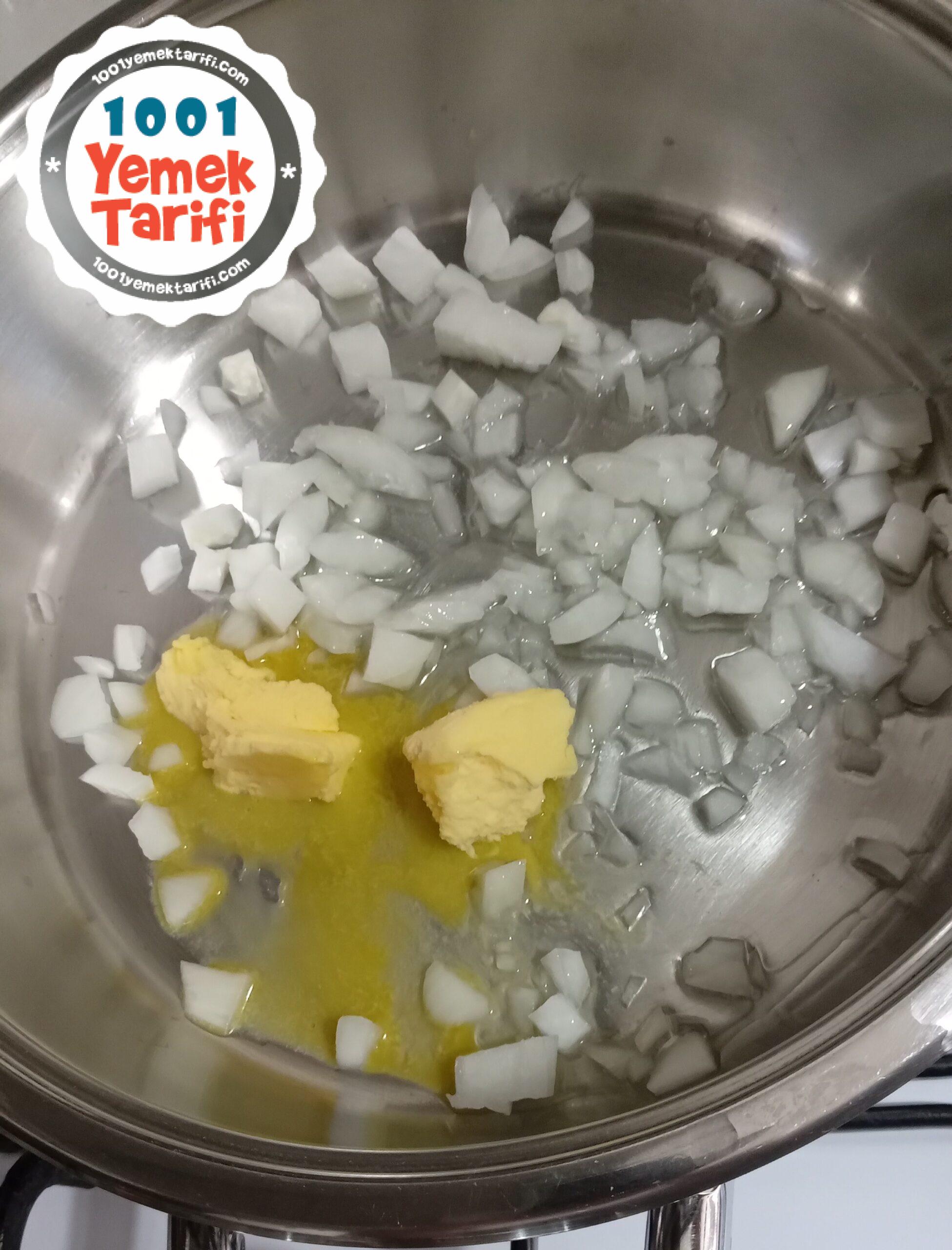 • Tenceremize yağlarımızı ve küp küp doğranmış soğanımızı ekleyip, kavuruyoruz.