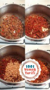 • Haşlanmış kuru fasulyeyi de ilave edip karıştırın.