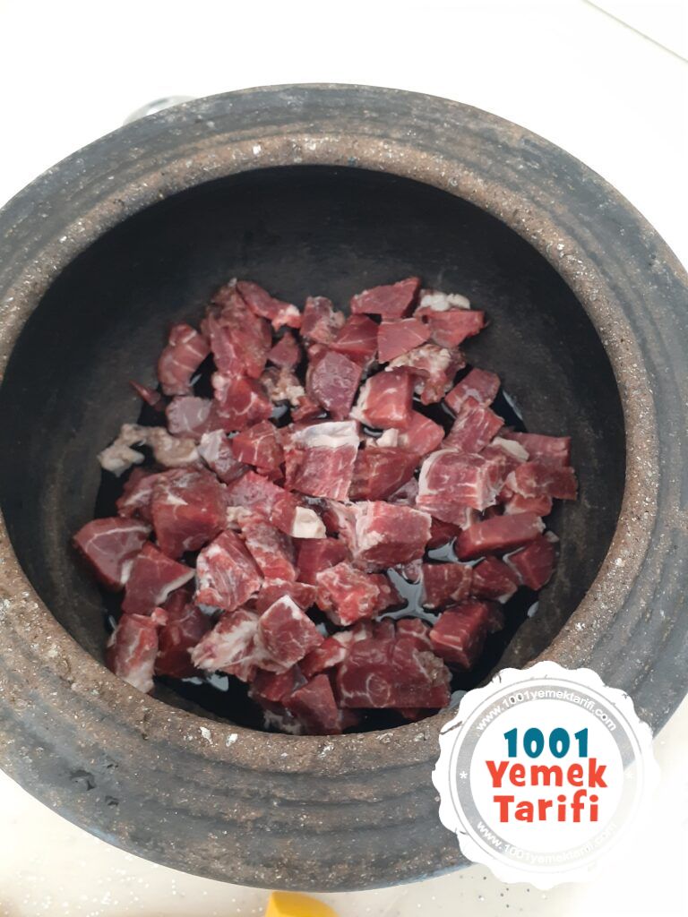 - Üzerine küp küp doğradığımiz dana etlerini serpiştirelim.