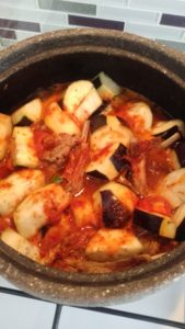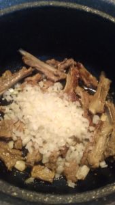 - 2 yemek kaşığı biber salçası ile iki diş doğranmış sarımsakları da ilave edelim. 3 su bardağı su ekleyip güvecin kapağını kapatalım kısık ateşte pişmeye bırakalım… yaklaşık olarak 2 saatte pişiyor