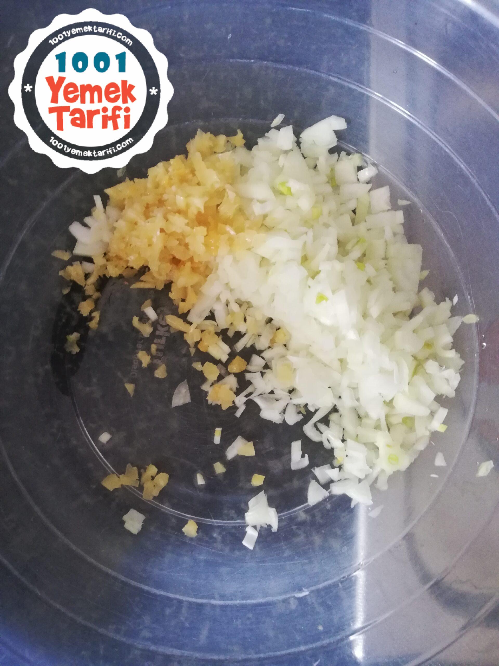 - Sogan ları ve sarımsakları küçük küçük dogruyoruz ve kabımıza alalım.