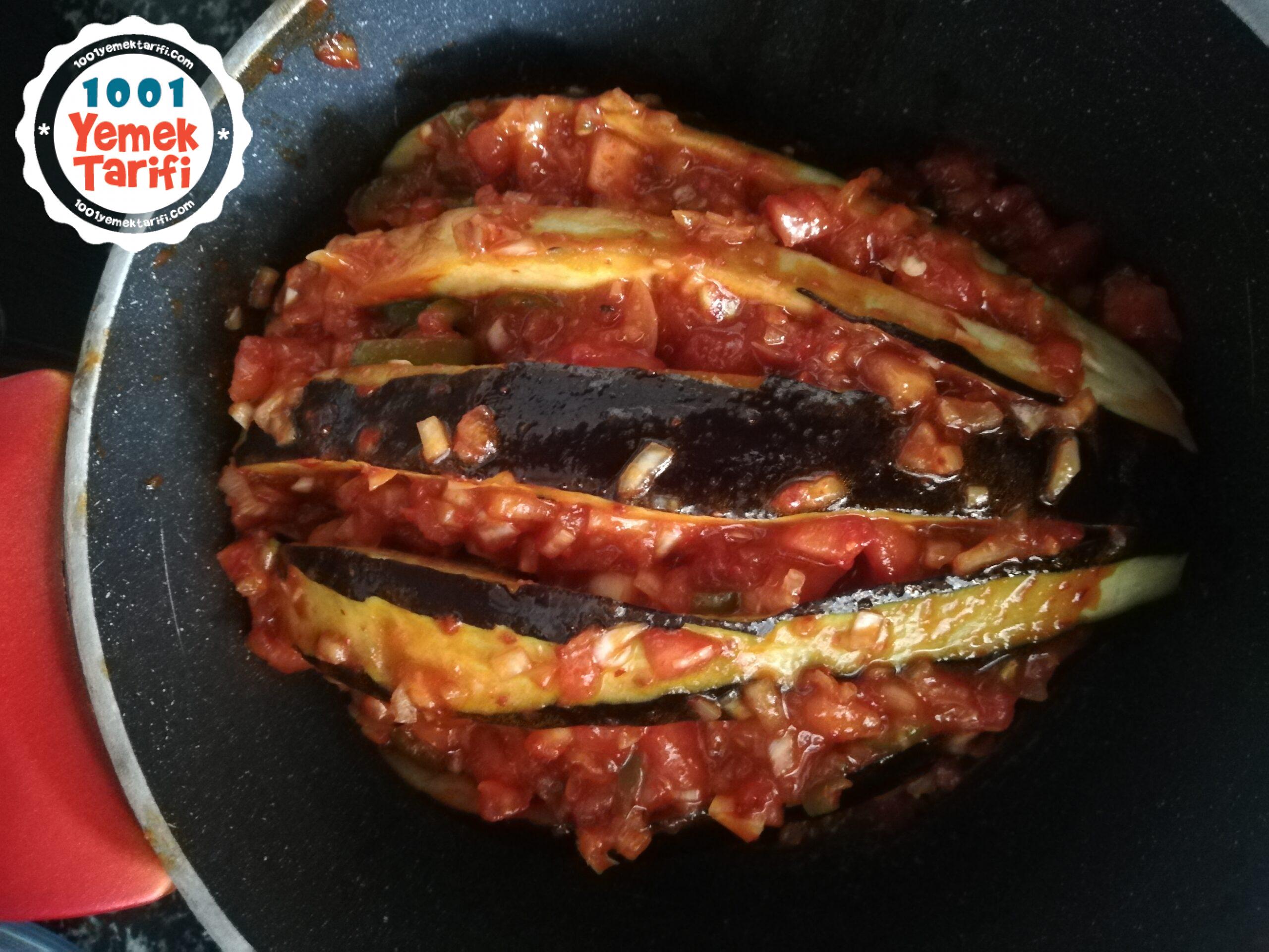 - Patlıcanlarımızın arasına hazırladığımız harcı koyalım ve kazanımıza koyalım patlıcanları.