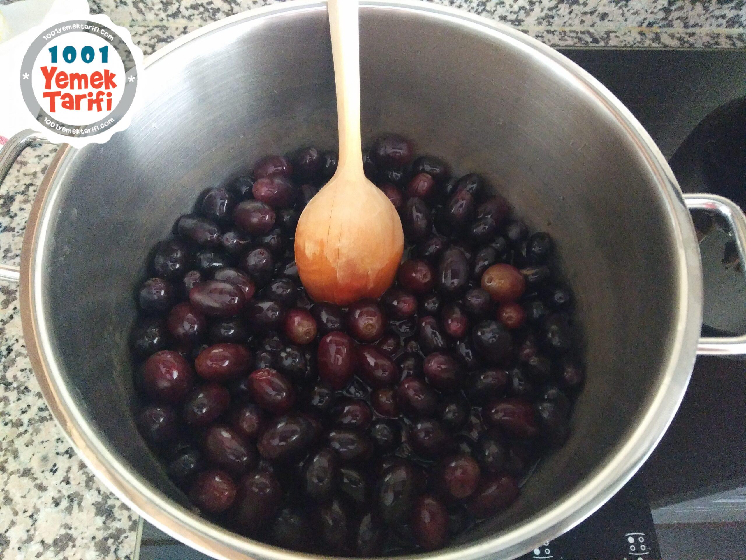 • Üzümleri ilk olarak az su ile tencerenin kapağı kapalı şekilde arada kaşık ile ezerek pişirdim. Böylece üzümlerin hizlica pişmesini sağladim.