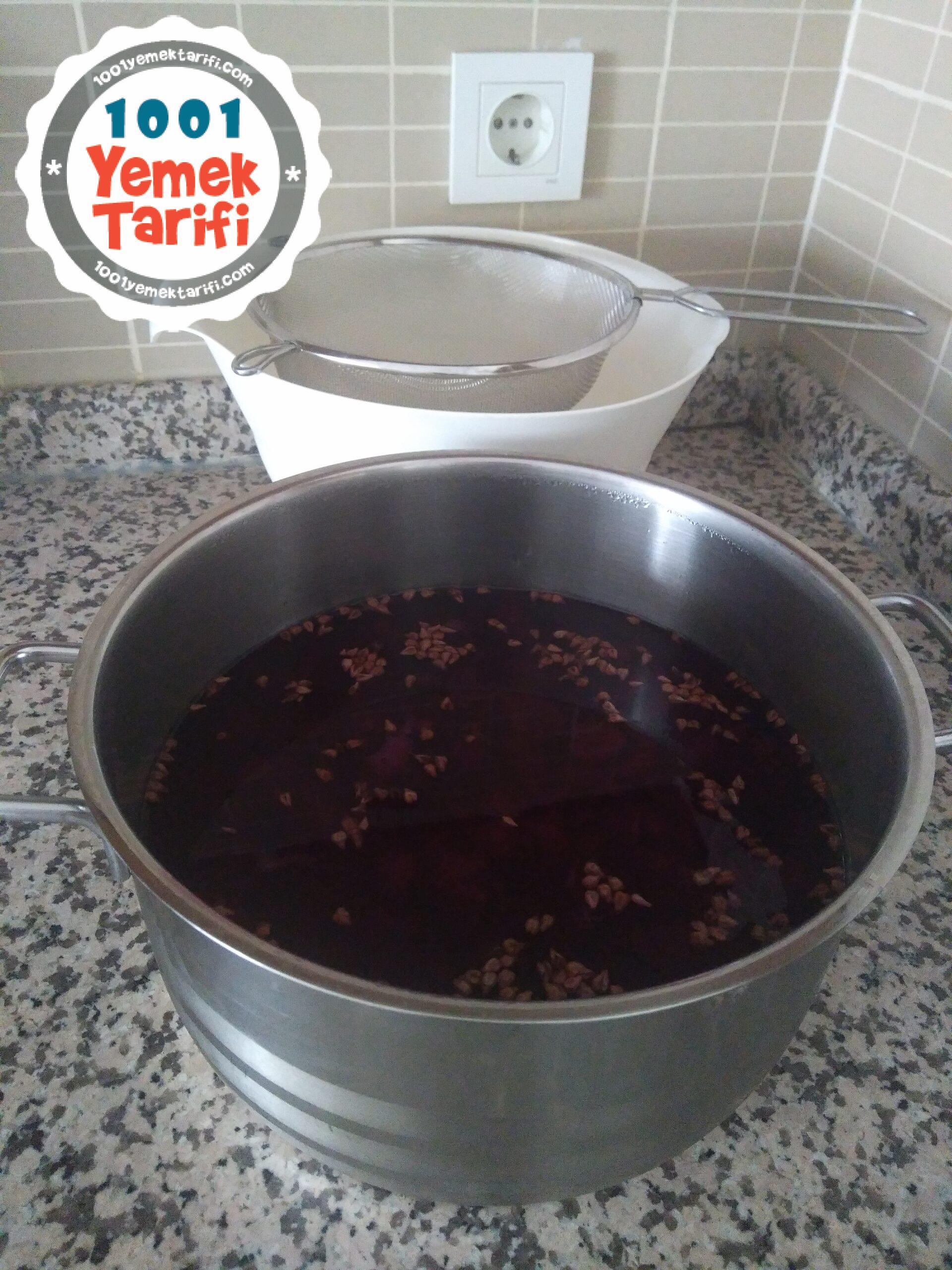 • Kaynayan üzüm suyu iyice soğuduktan sonra dolaba koydum ve 1 gece beklettim.