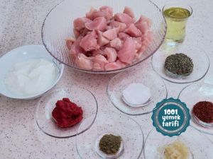 - 1 kilo Tavuk göğsü (veya tavuk kuşbaşı)