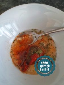 • Sosu için bir kaba salça ve diğer malzemeleri ekleyip iyice karıştıralım.