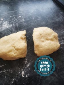 • Hamurumuzu iki bölelim ve bir merdane yardımıyla tavamızın büyüklüğüne göre açalım.