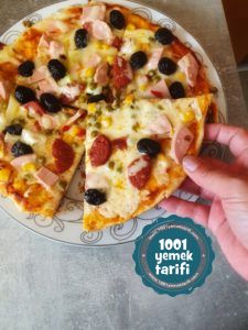 evde pizza tarifi-kolay pizza yapimi-karisik pizza nasil yapilir-kac kalori-nefis-evde tavada pizza tencerede