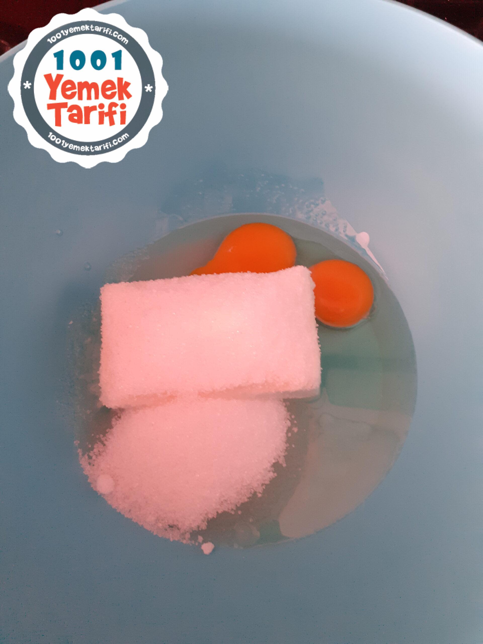 - Yoğurma kabımıza oda sıcaklığındaki margarin, sıvıyağ, yumurta sarılarını ve de şekerimizi alıp karıştırıyoruz.