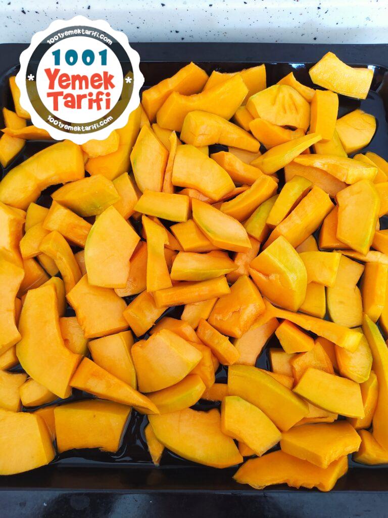 - Sulanan kabağımızı fırın tepsisine alalım ve 180 derece önceden ısıtılmış fırında 40-45 dakika pişmeye bırakalım.