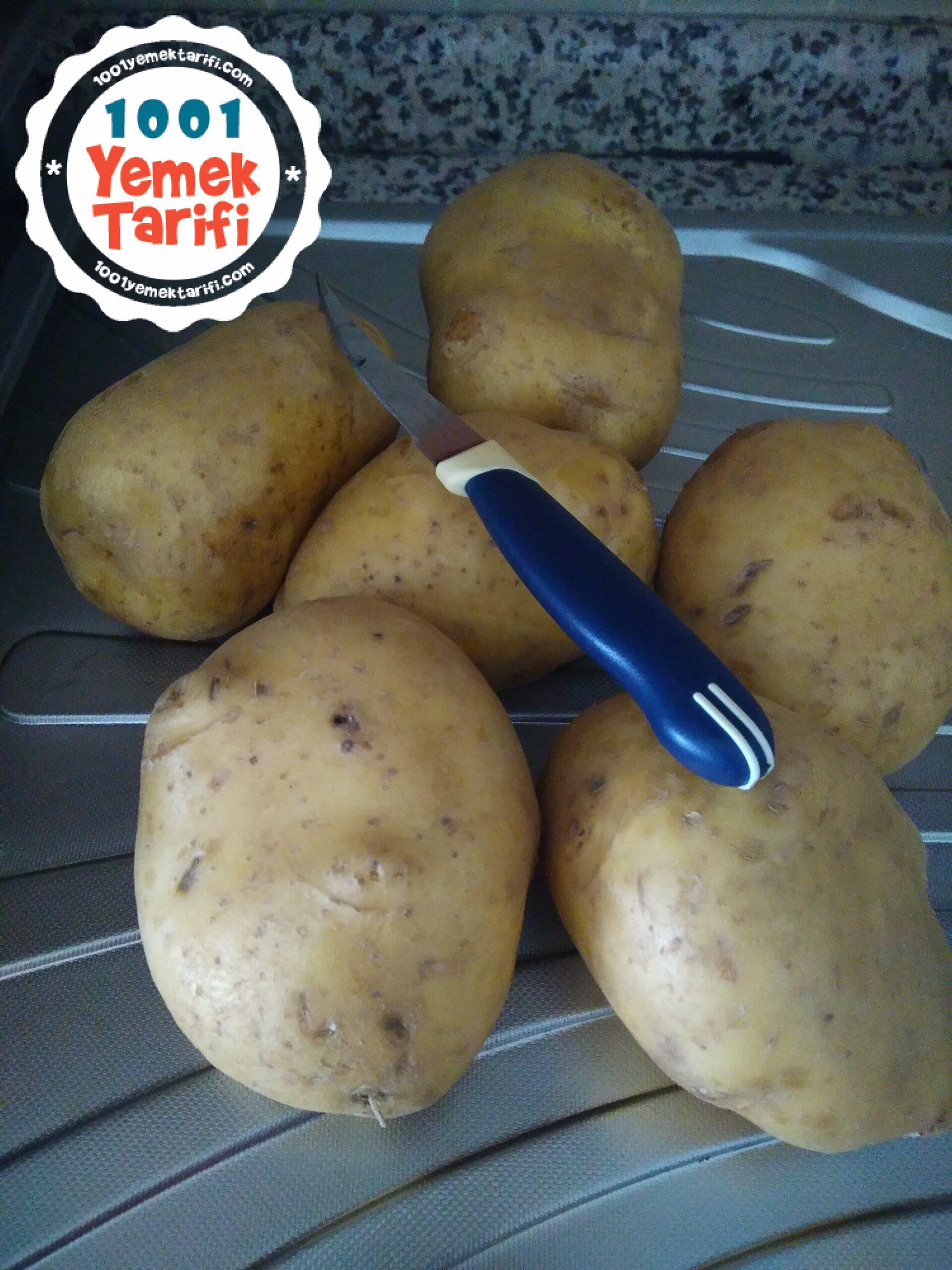 - 1) Patatesler güzelce yıkanıp, kurulanır. Bıçak ile 5- 6 farklı yerinden delinir. ( Bıçağı sokup çıkardım)