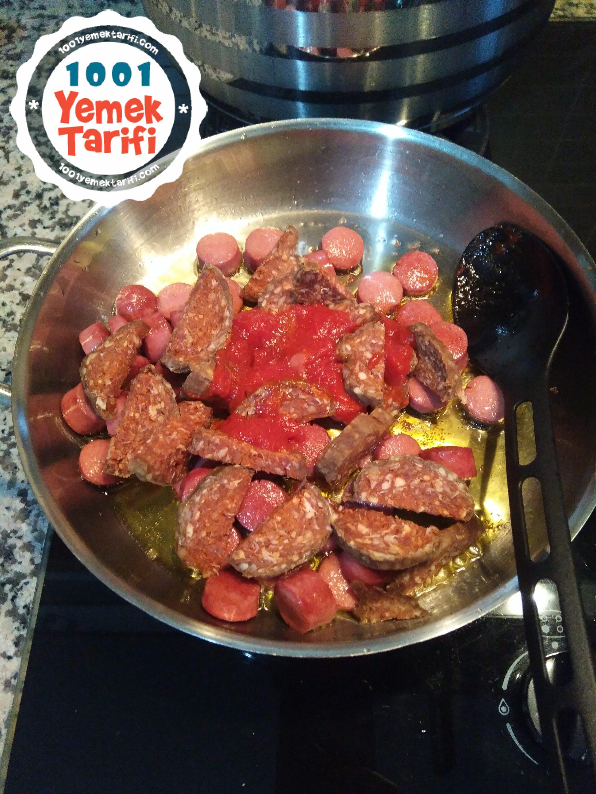- 5) Sosis , sucuk ve salçayı tavada kavurdum.