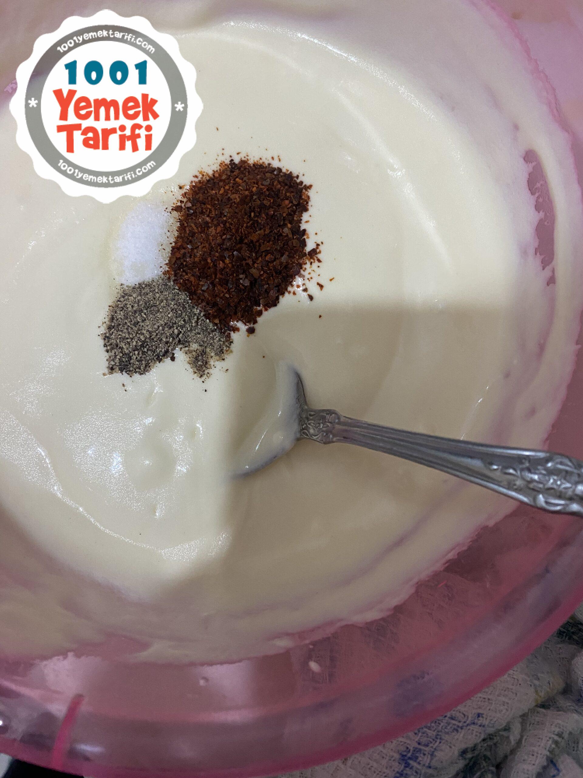 - Makarna haşlanırken sosumuzu hazırlamaya başlıyoruz. Yoğurt,yumurta,yağ ve unu bir kaba alıp karıştırıyoruz.