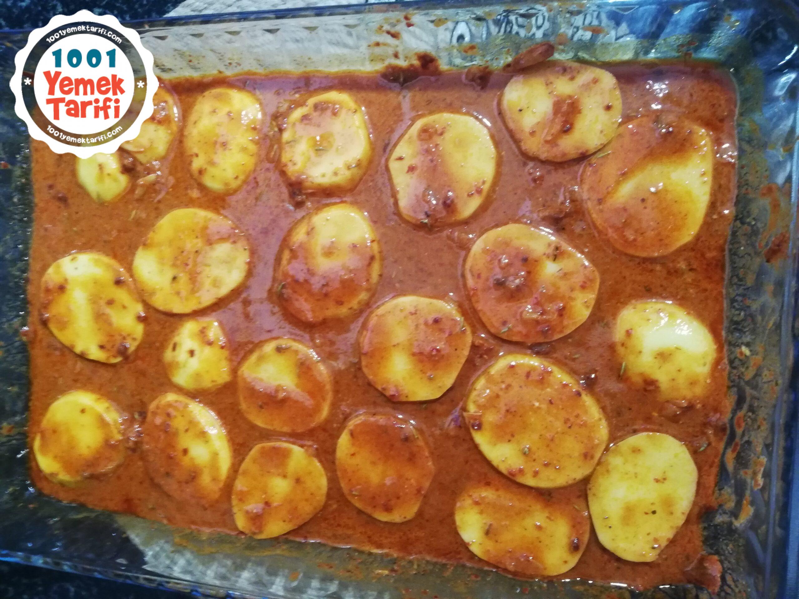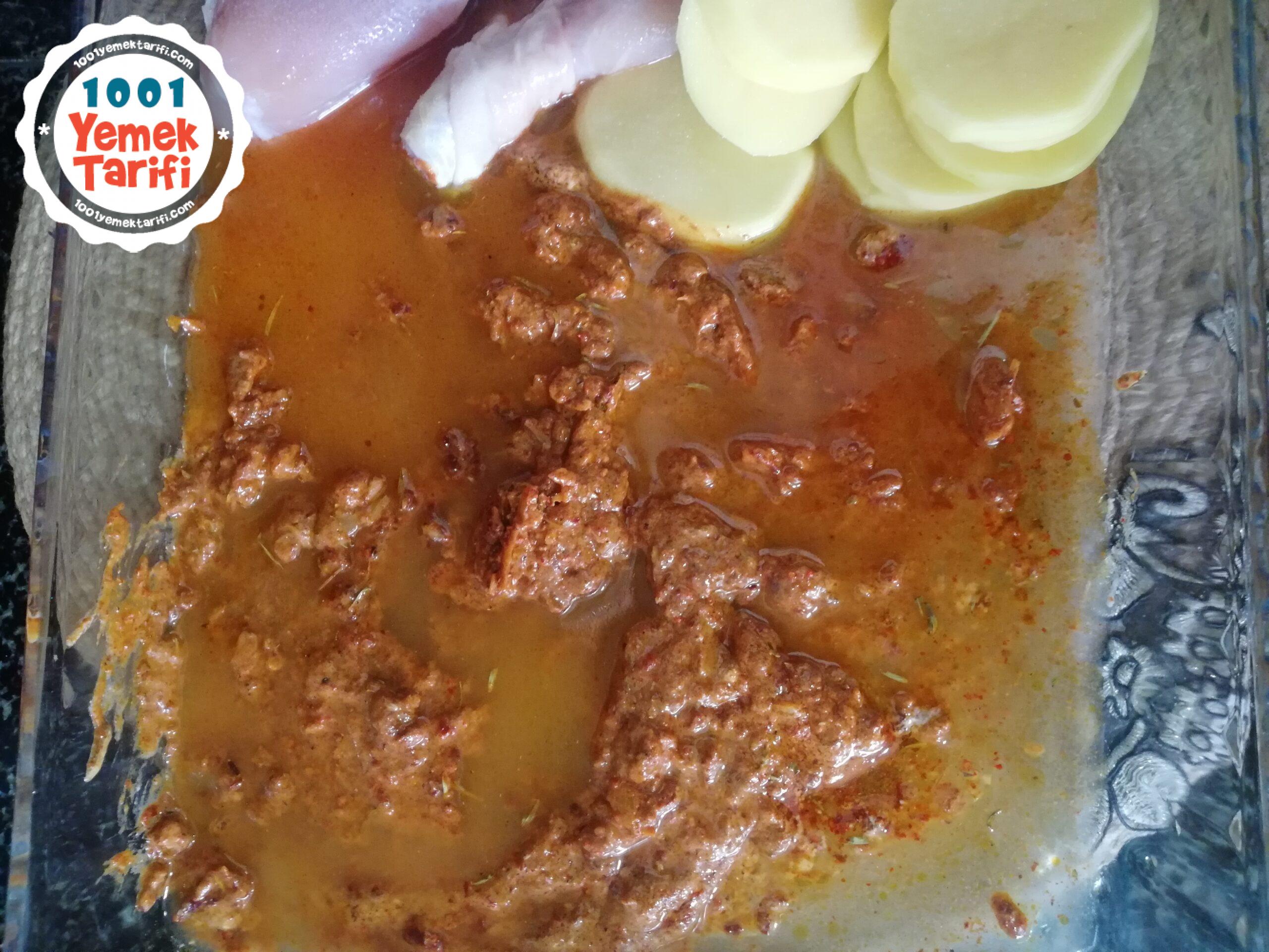 - Patateslerimizi ve butlarımızı iyice sosla yalım ve alta patatesleri dizelim.