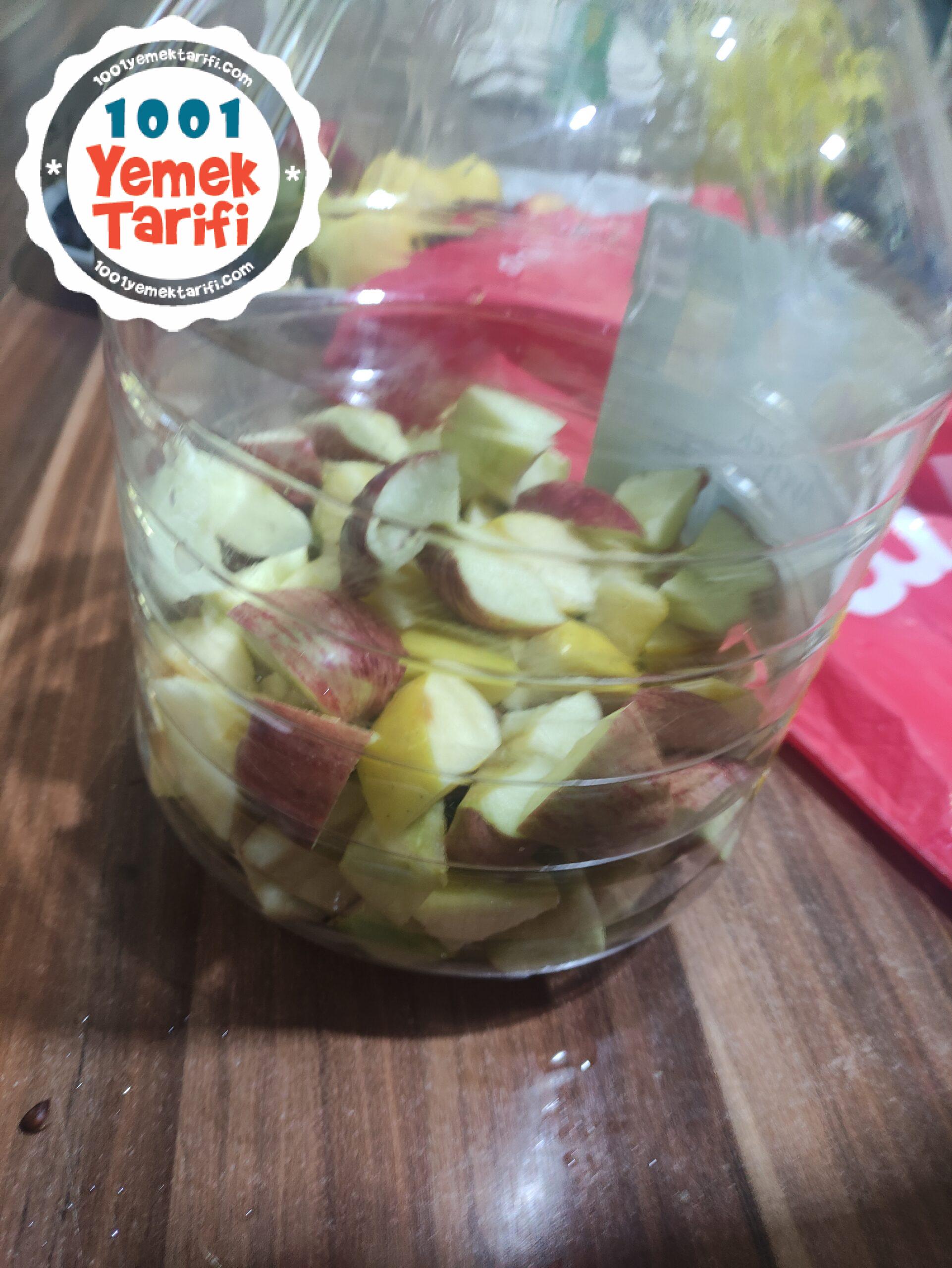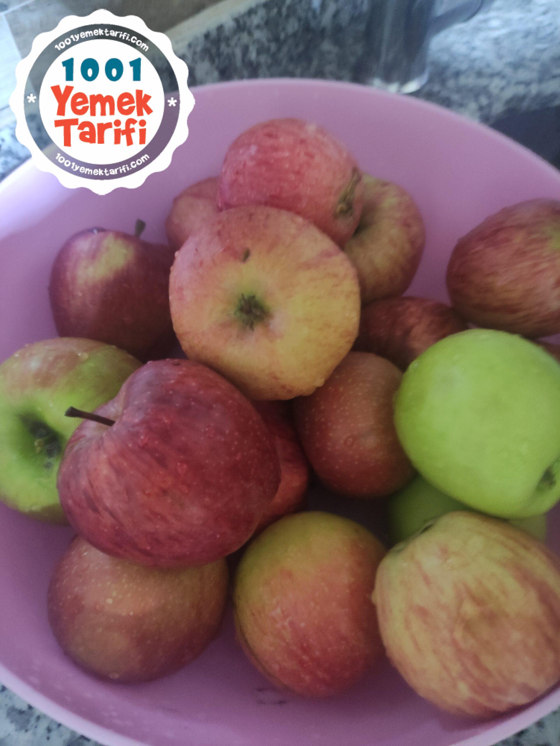 - Elmalar yıkanır ve güzelce doğranır