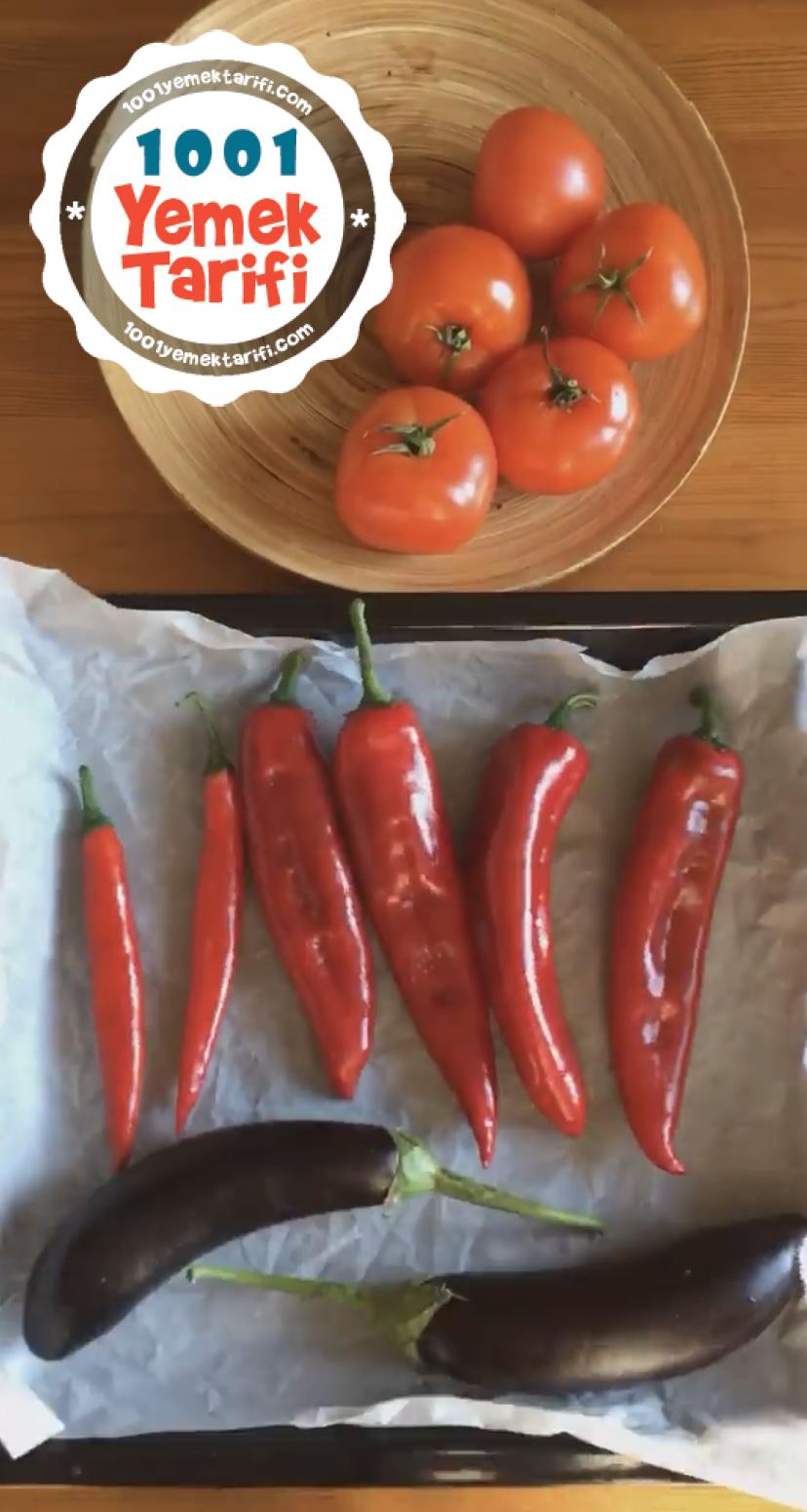 • Kırmızı biber, patlıcan ve domatesleri fırında közlüyoruz.