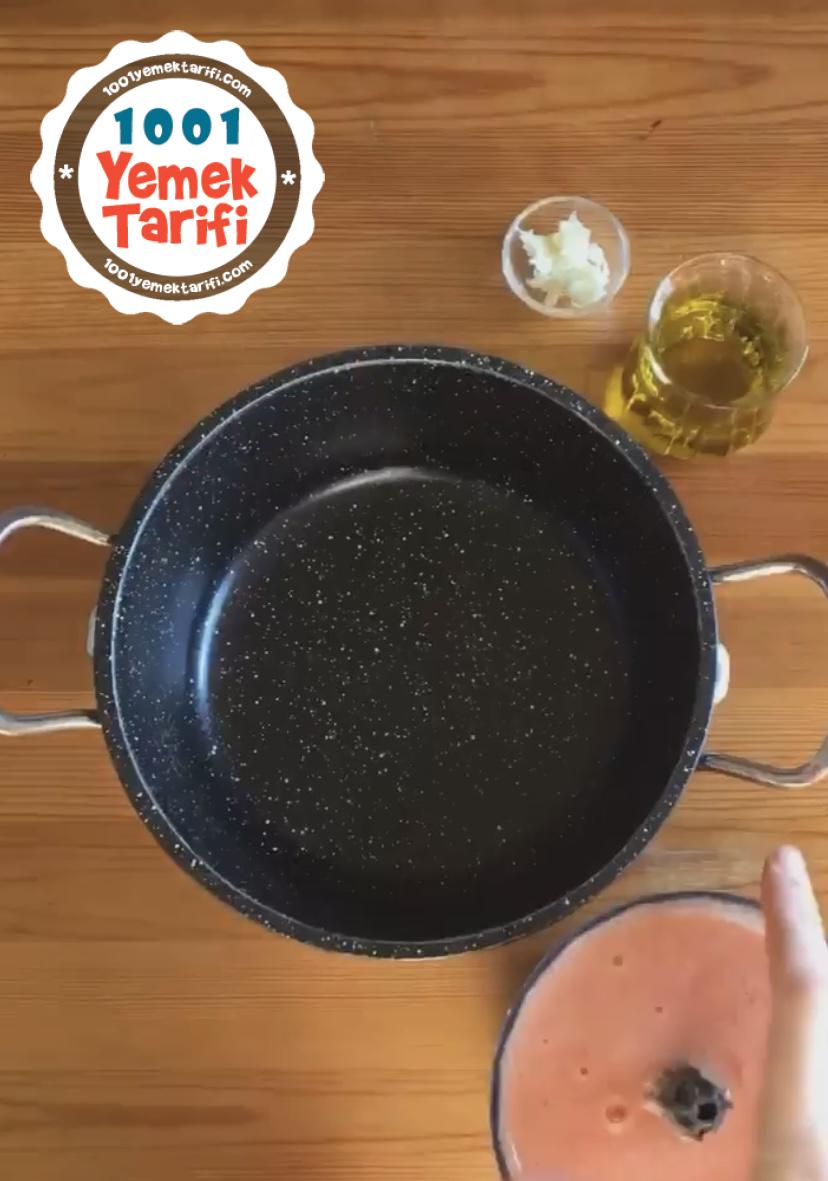 • Zeytinyağı, sarımsak, tuz ve karabiberi ekleyip tencerede karıştırıyoruz.