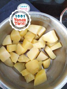 - Öncelikle iç harcımızı hazırlamak için patatesler soyulur küp küp doğranır ve suda pişene kadar haşlanır.