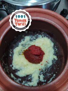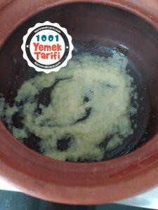 - Isınan güvece yağlar ve soğan eklenerek soğanlar pembeleşene kadar kavurulur.