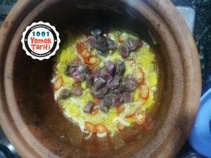 - Soganımızı ve biberimizi yemeklik dograyalım ve Sıvıyagla beraber güvecimize alalım kavurmaya başlayalım.