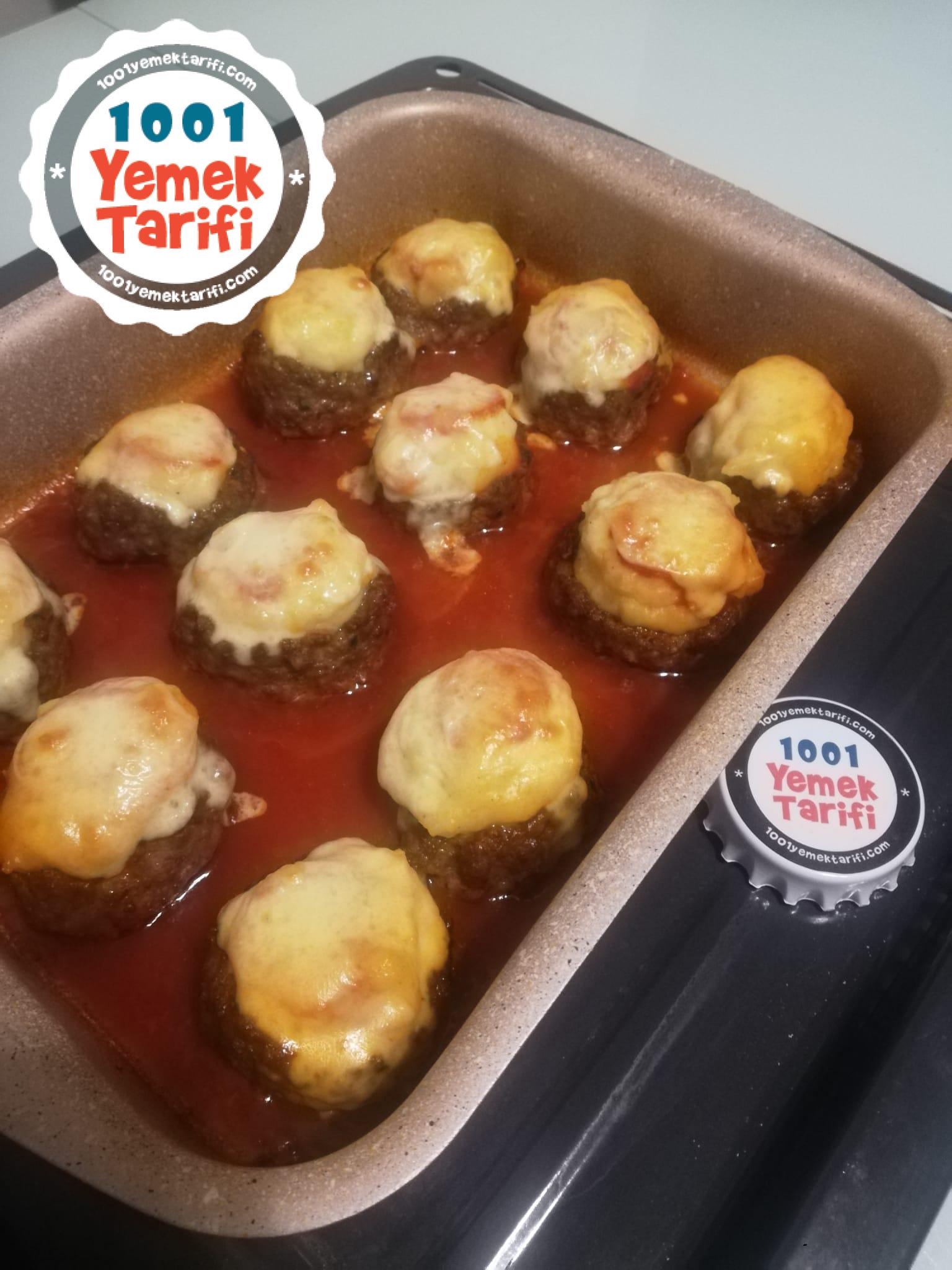 • Su ile açtığımız salçayı püre ile doldurduğumuz köftelerin tepsisine aktarıp köftelerin üzerinede kaşar peyniri ekleyerek tekrar pişirelim