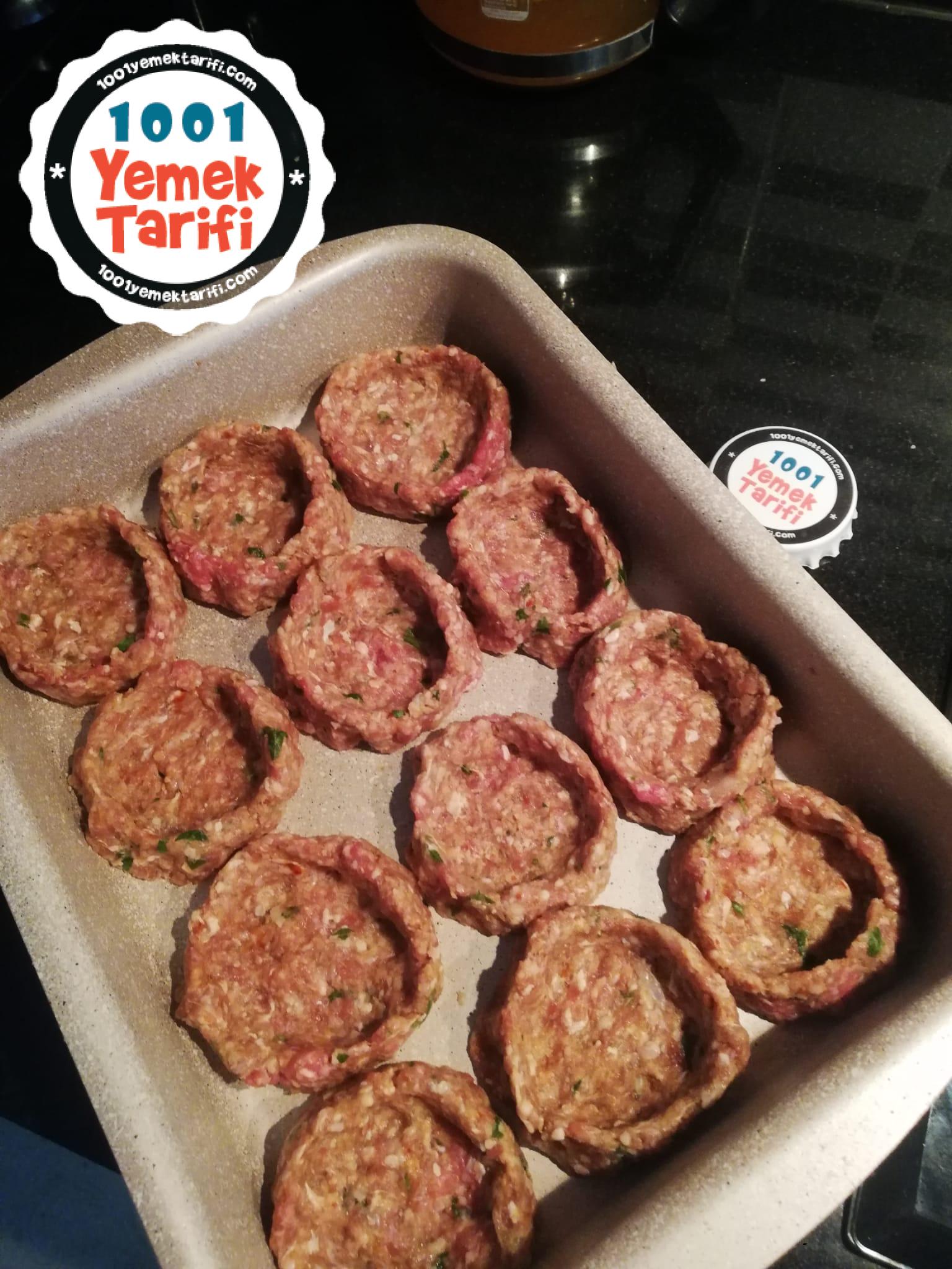 • Mandalina büyüklüğünde parçalar alıp avucumuzda ortası çukur olacak şekilde açıp fırın tepsimize yerleştirelim.