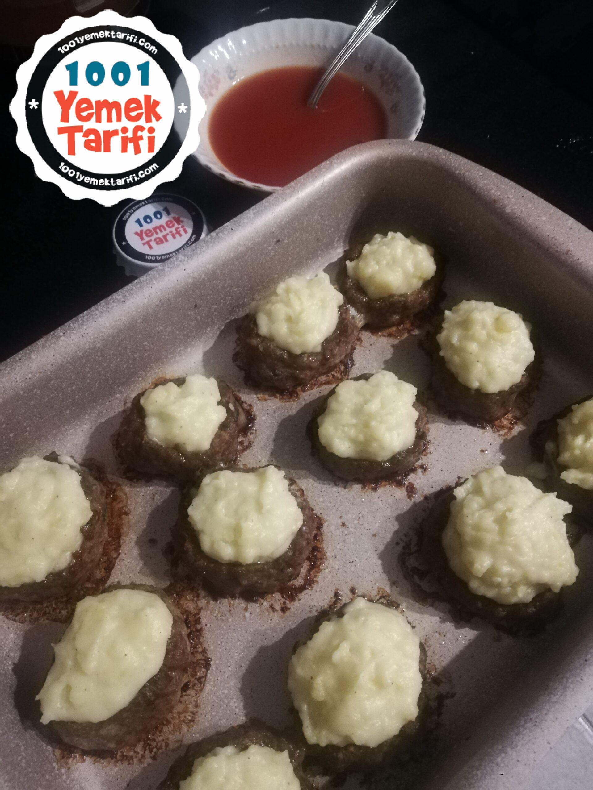 • Fırından aldığımız köftelerin orta çukur kısmını püre ile dolduralım.