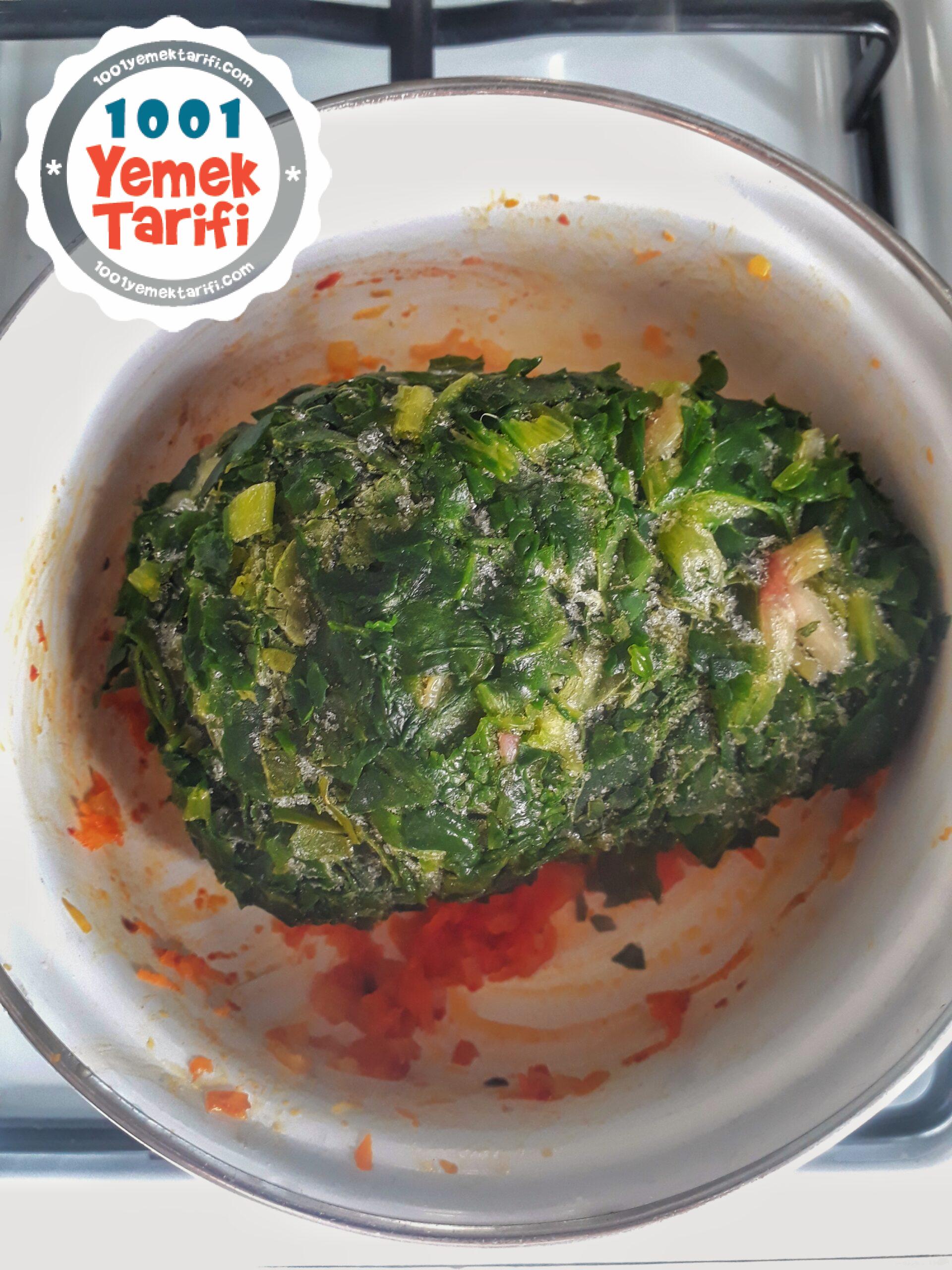 - Üzerine dondurucudan çıkardığınız ıspanağı ekleyin.