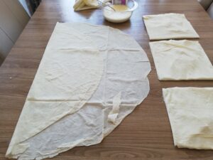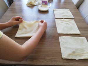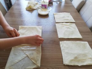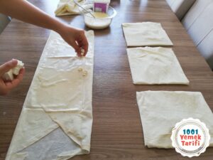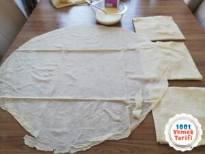 - Böylece kare elde ediyoruz. Tüm yufkalara aynı işlemleri tekrarlayalım. 5 adet gözlememiz olacak.