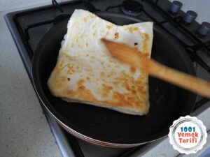 - Tava ısınınca gözlemeyi tavaya alıp arkalı önlü çevirerek pişirelim. Afiyet olsun. 🙂
