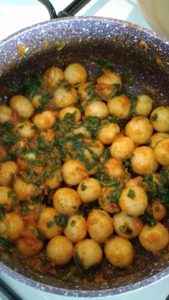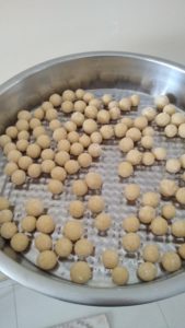 • Küçük küçük yuvarladığımız köfteleri tepsiye diziyoruz.. Ardından derin bir tencerede suyu kaynatıyoruz ve köfteleri haşlıyoruz.