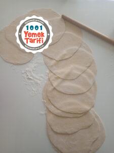 - Un serperek oklava ile servis tabağı boyutunda açalım bir tepsiye aralarına bolca sıvıyağ koyarak üst üste dizelim