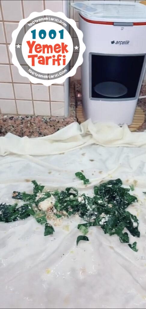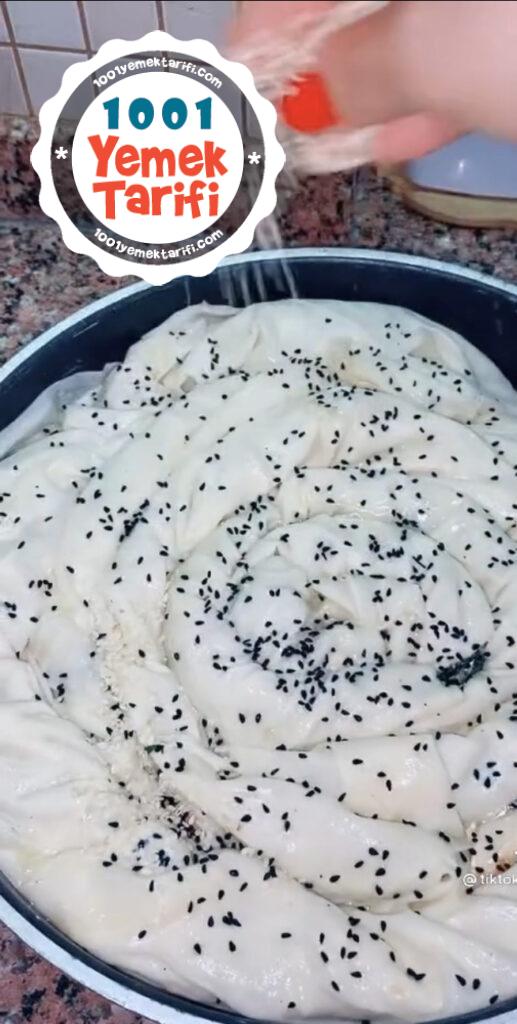 - Ispanaklı harcıda üzerine serip yuvarlak şekil verip tebsiye yuvarlayalım üzerine susam serpelim 180 c fırında pişirelim