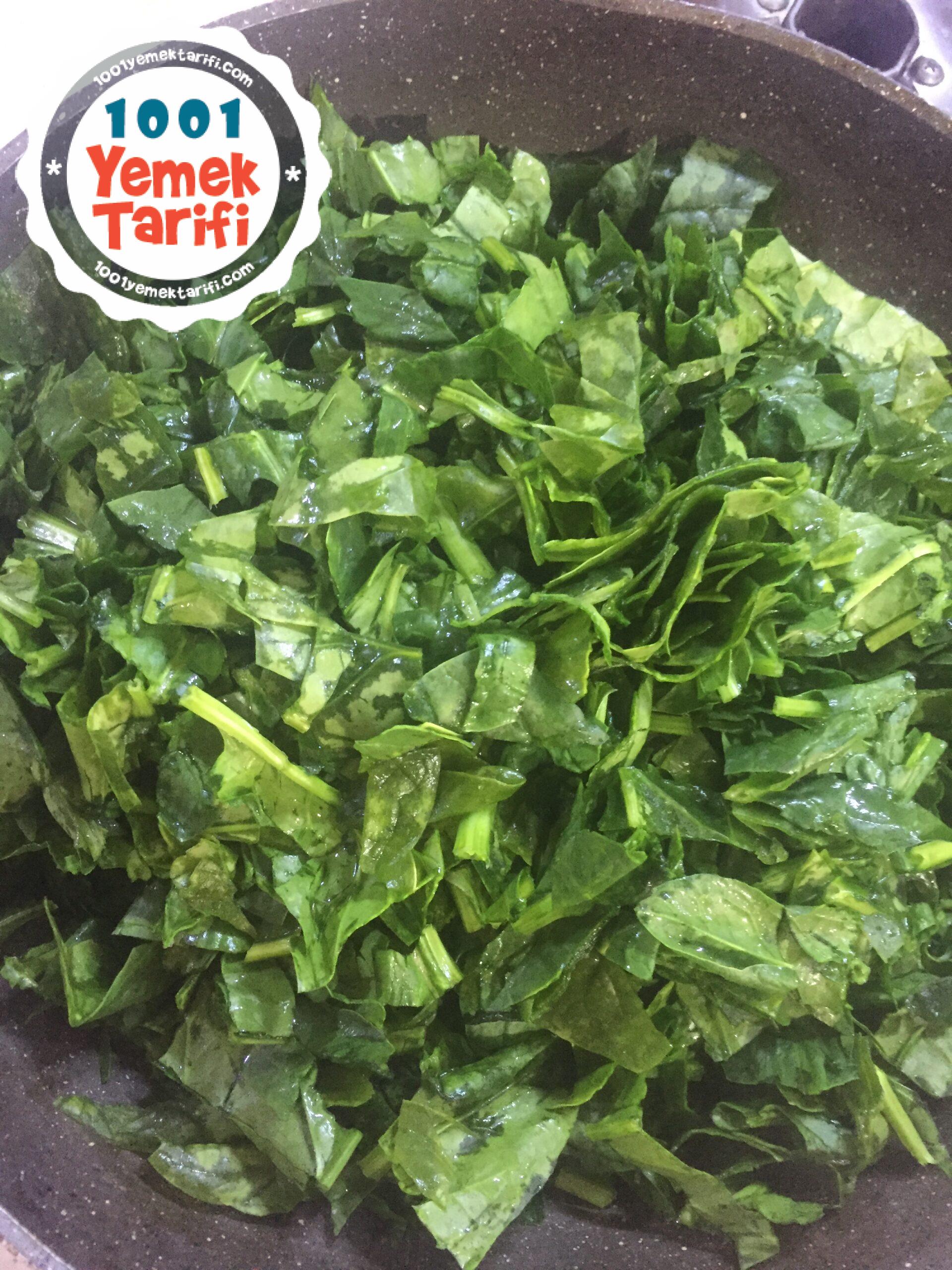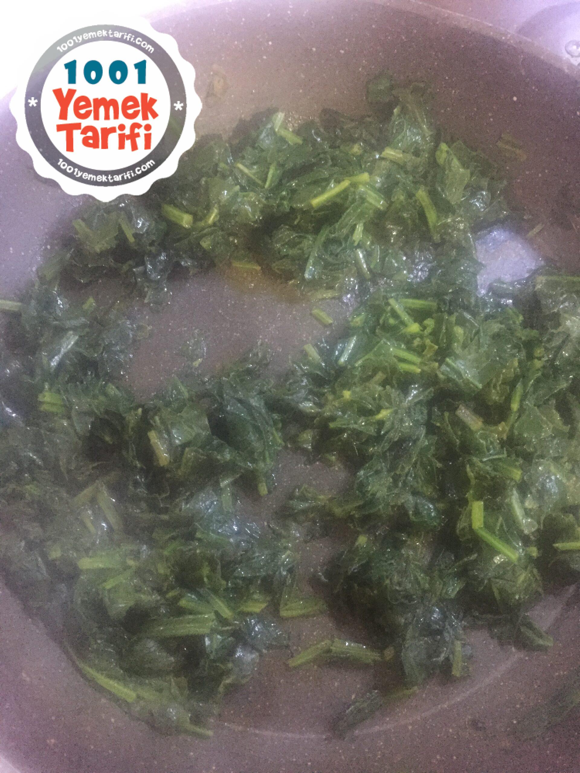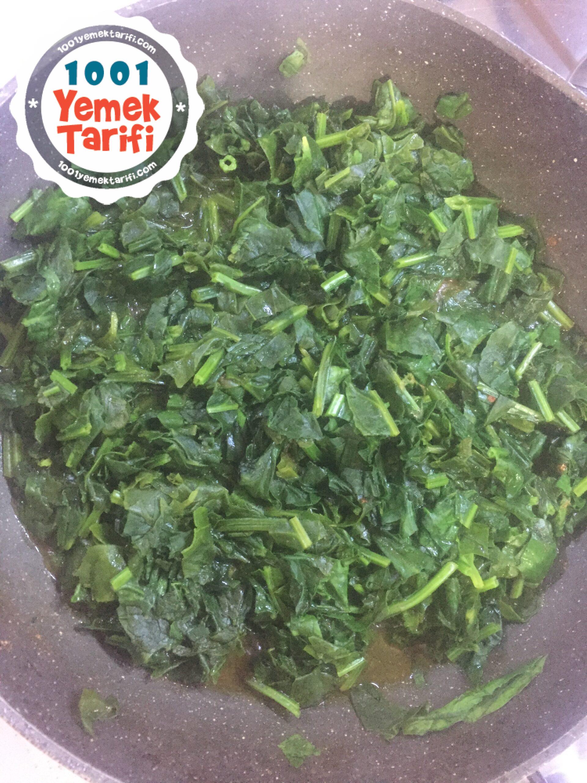 - Ispanaklar ölmeye başlayınca baharatlarını ve yağı ekleyip kavuruyoruz