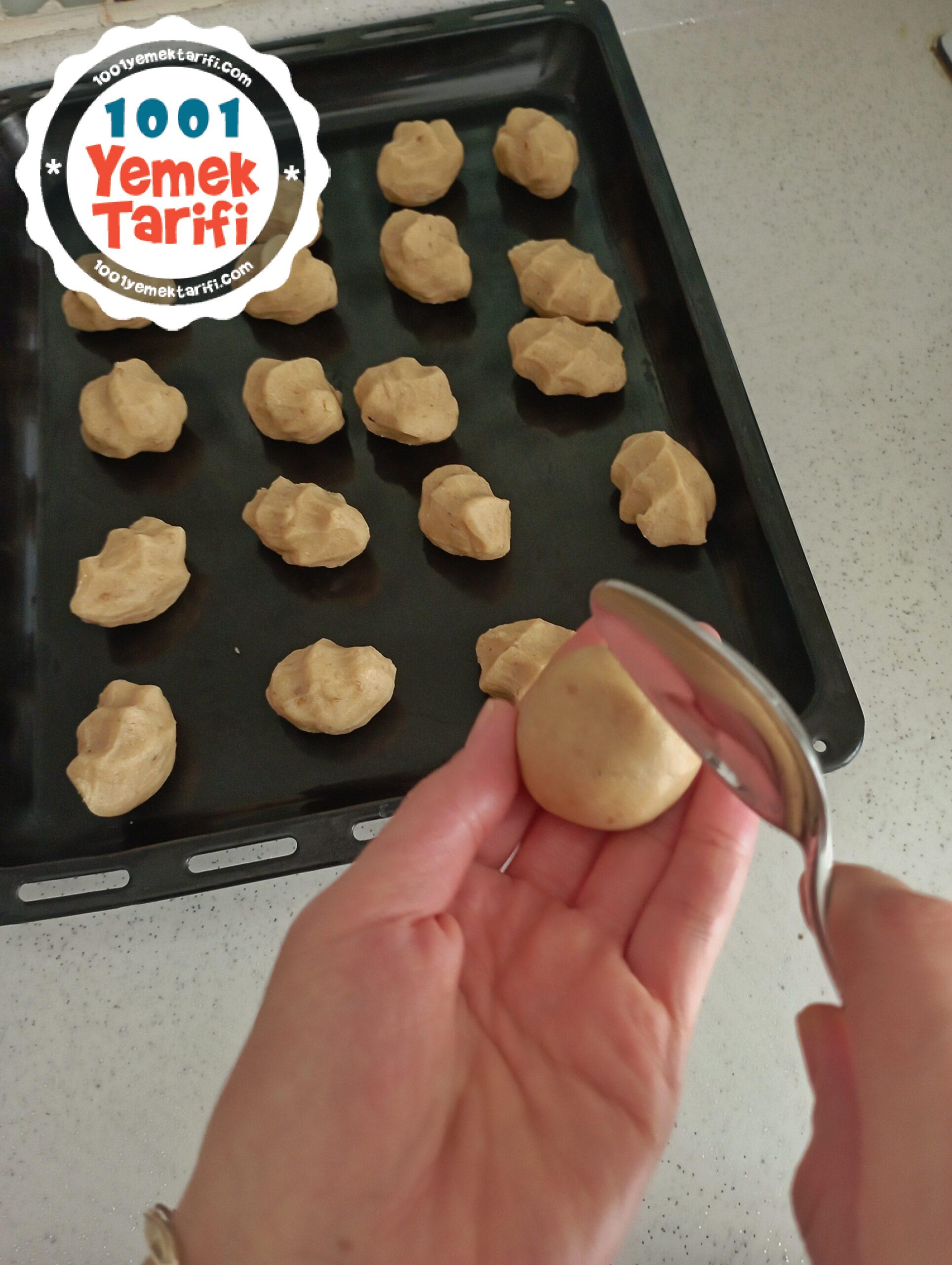 - Kaşık yardımıyla şekil verip tepsiye dizin.
