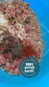 - Öncelikle köfte için bütün malzemelerimizi karıştırma kabımıza alıp yoğuralım ve şekil verelim.